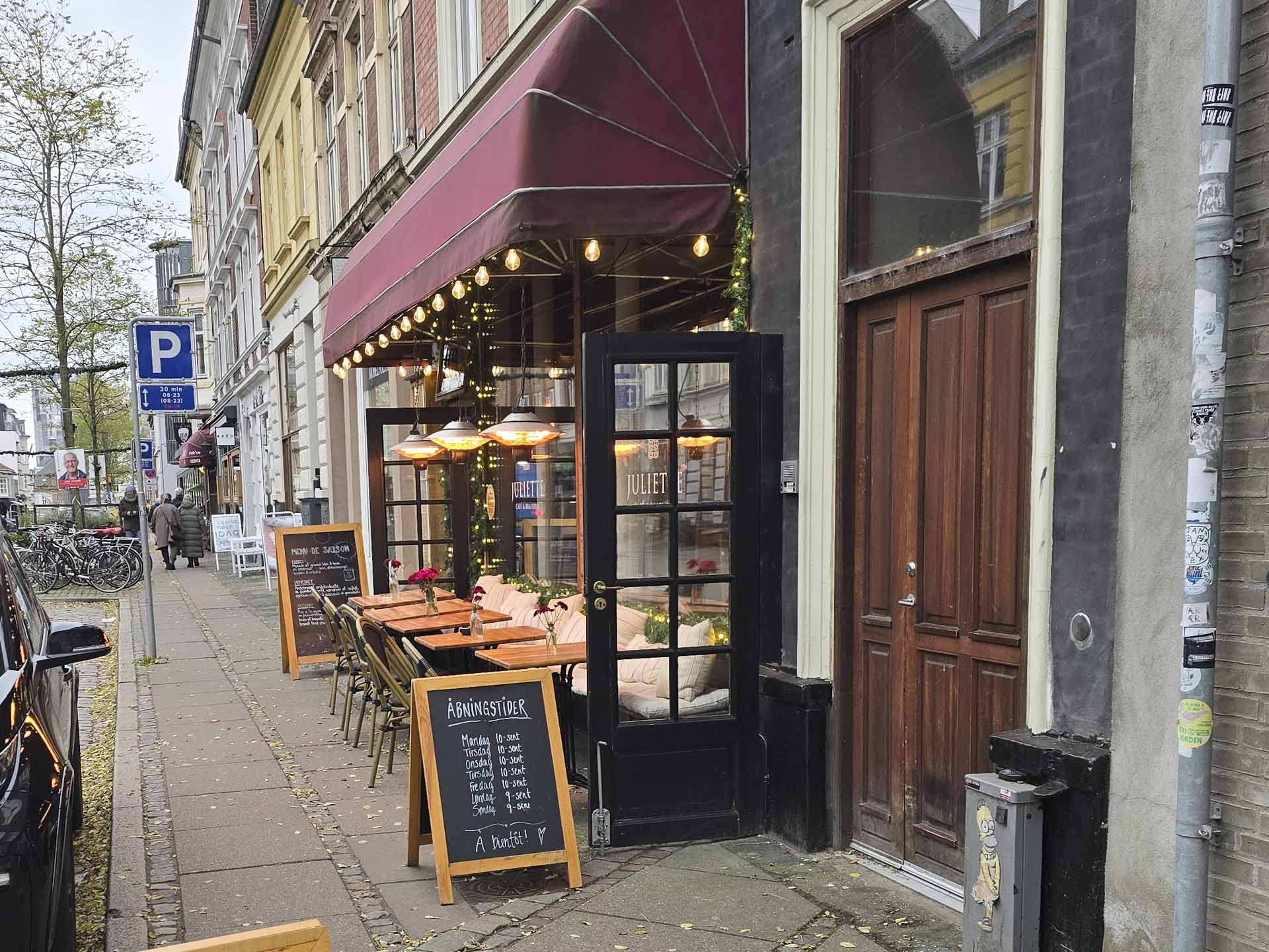 Juliette ligger i de lokaler, den har ligget i siden 2012. Her forenes fransk bistro stemning med det bedste fra Aarhus. Det var lige før, vi glemte, at vi ikke sad i Paris, men i Jægergårdsgade på Frederiksbjerg.