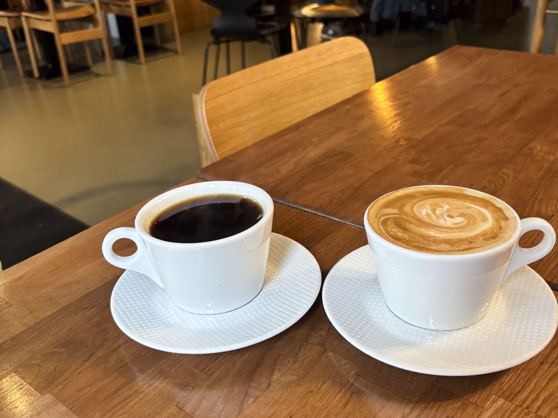 Efter frokosten rundede vi af med en kaffe og en cappuccino. Varm og hurtig serveret.