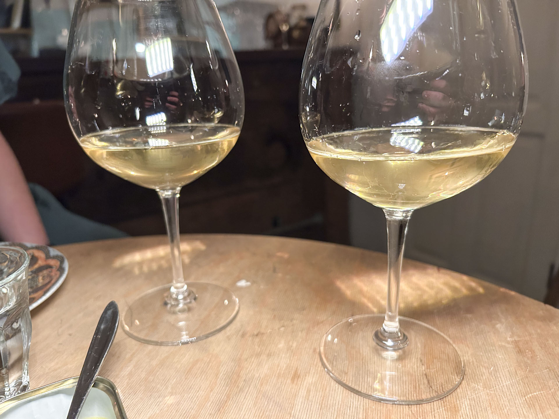 Vi endte med at trykteste glaskortets formåen og fik først serveret en sprællevende hvidvin i form af chenin blanc fra Loire til 115 kr. glasset.