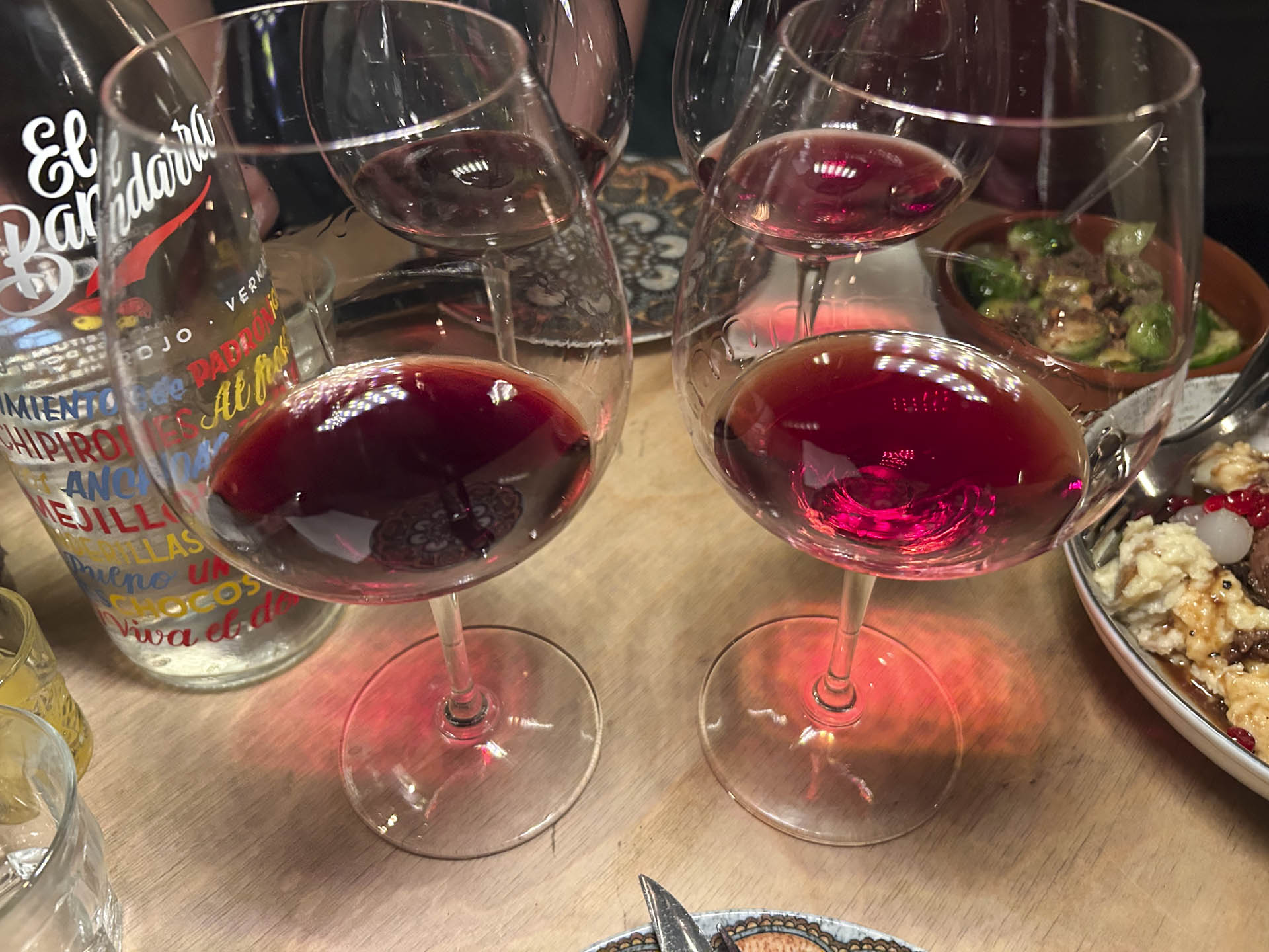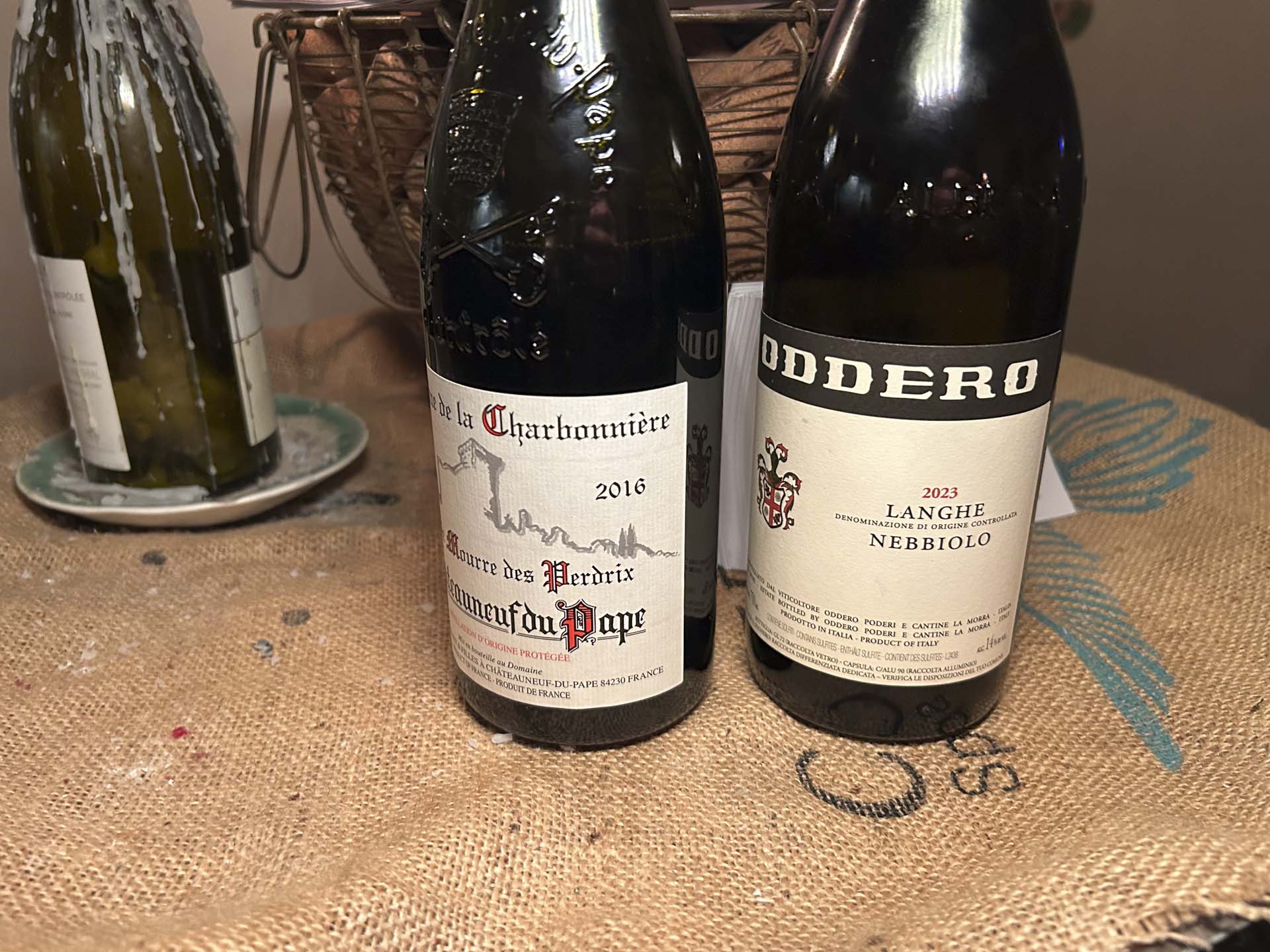 Til maden trådte Châteauneuf-du-Pape i karakter og supplerede med begyndende jernoxid- og jordbundsaromaer og moden blommefrugt. Langhe Nebbiolo fra Oddero var æterisk, feminint og gav tranebær, blomsterbutik og parfume fra sig. Hhv. 100- og 65 kr. for velskænkede halve glas.