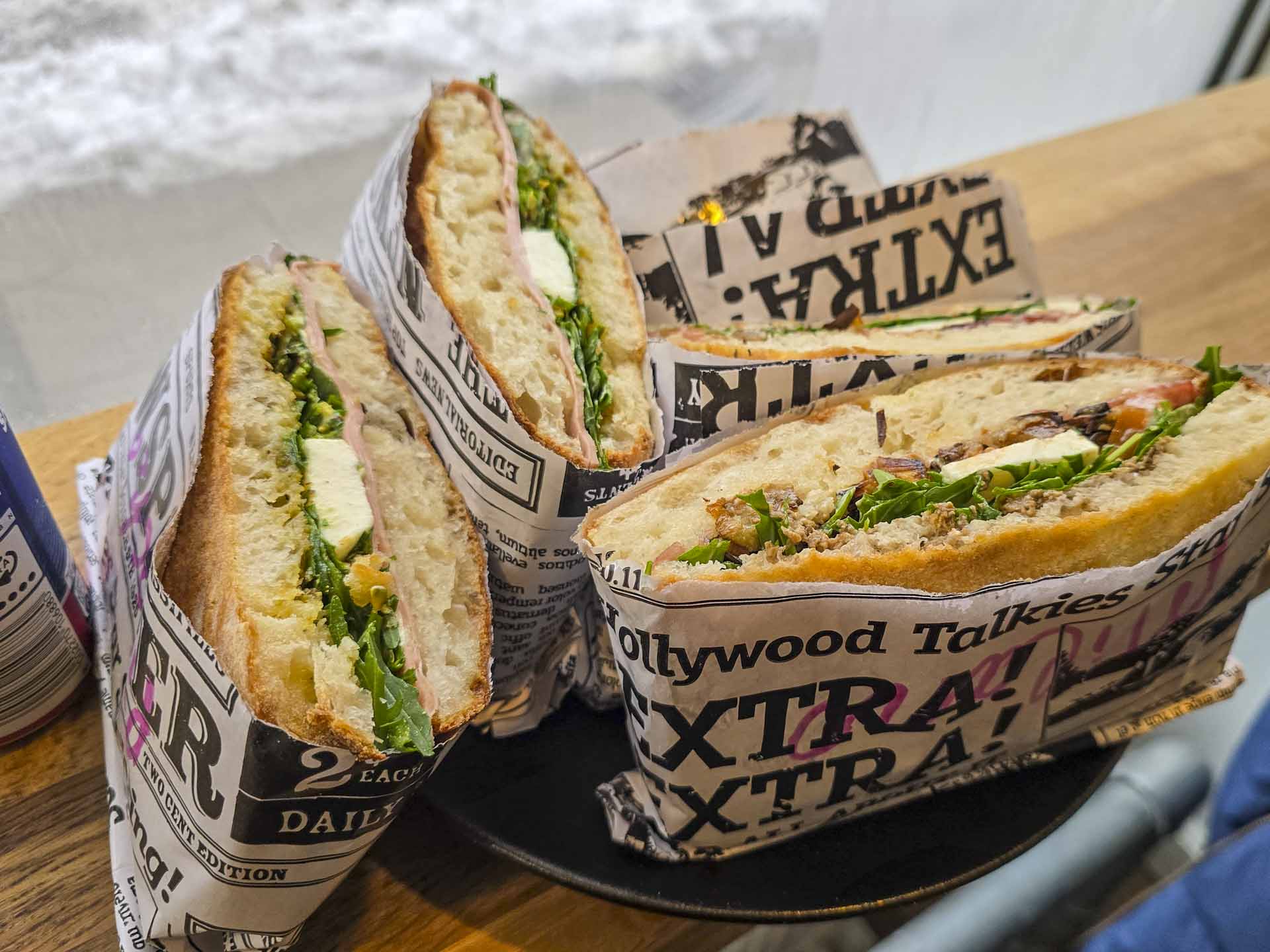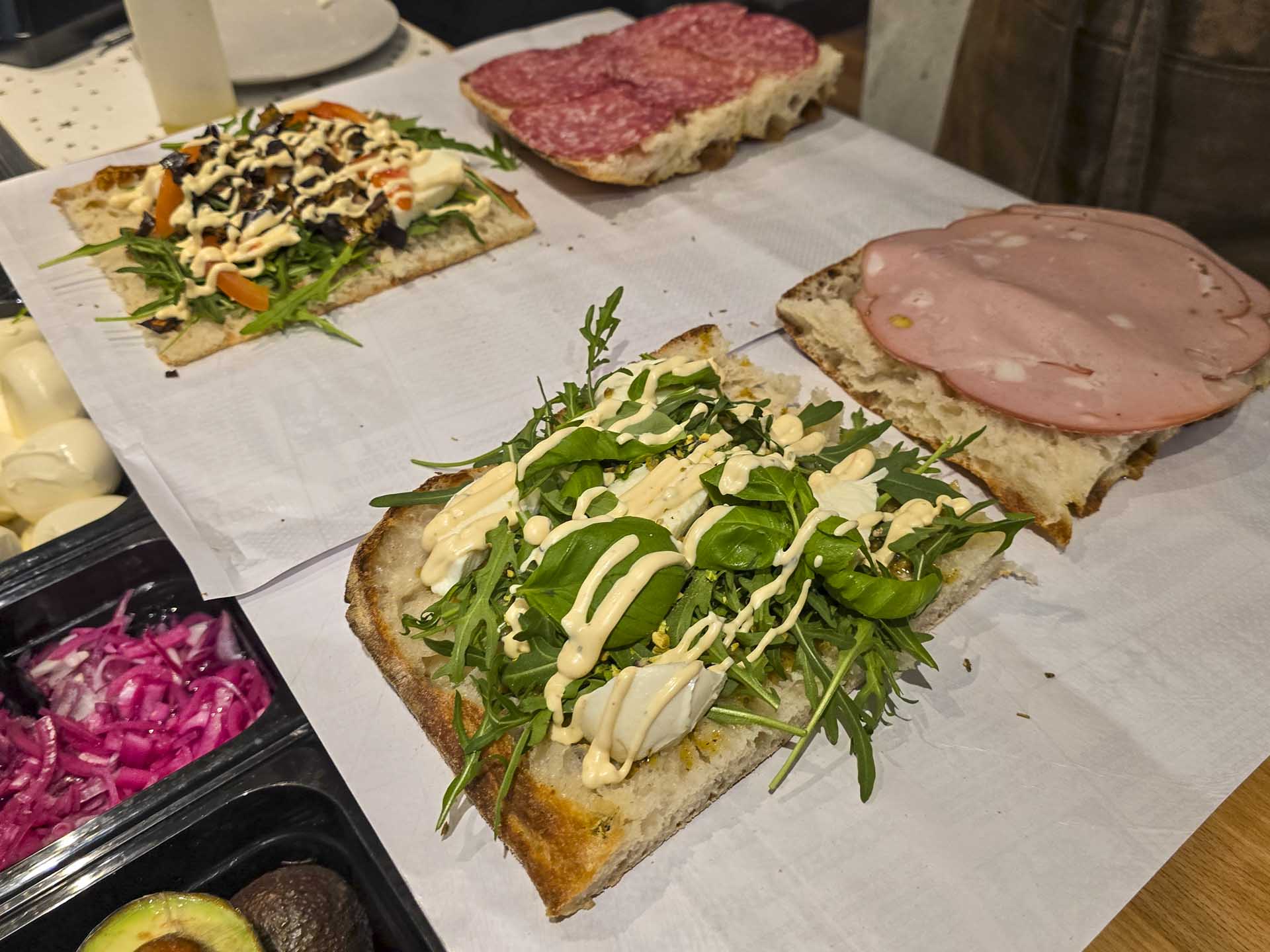 Vi ville se, hvad de kunne og bestilte 5 af deres sandwiches. Hvis man siger Italien og sandwich, er det umuligt at undgå pistachio.