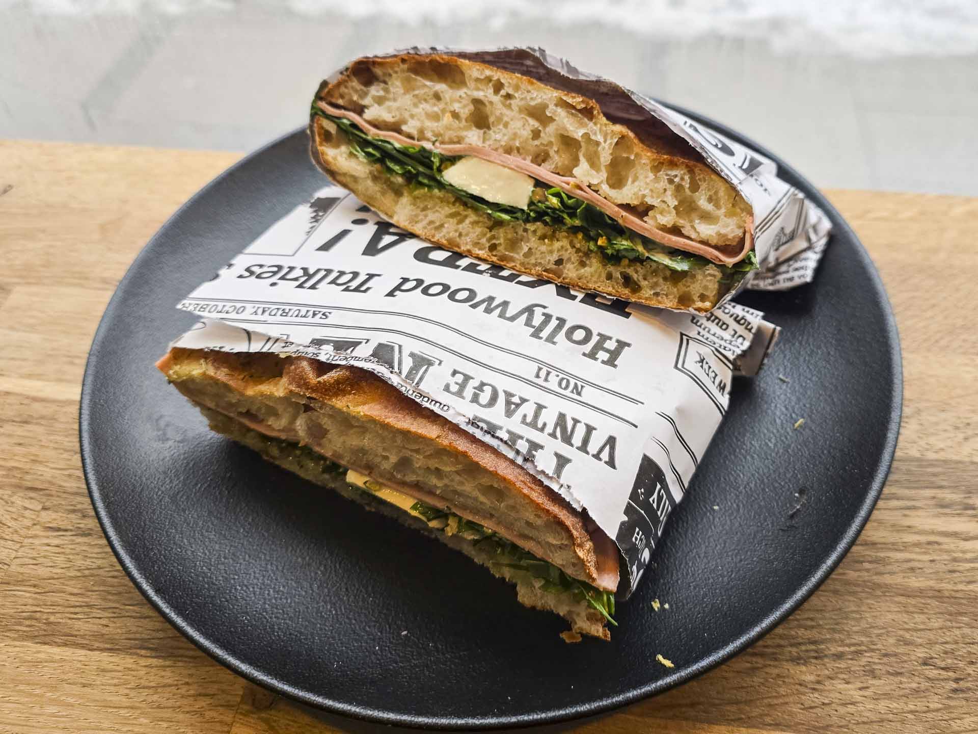 En flot sandwich, der var helt perfekt lavet.
