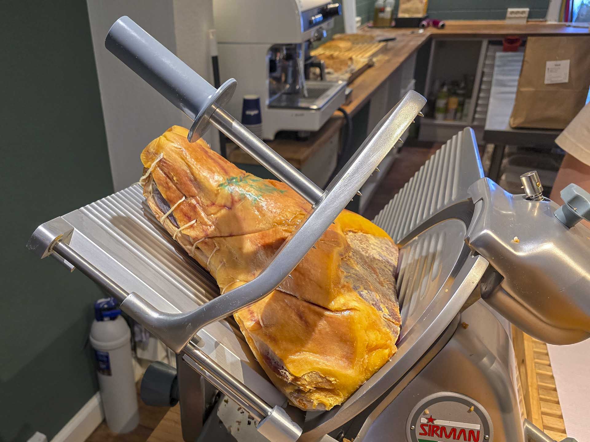 Skiverne af Mortadella Bologna IGP havde en mild, delikat smag, der ikke overdøvede pistacien, og fedtet smeltede sammen med det lune brød.