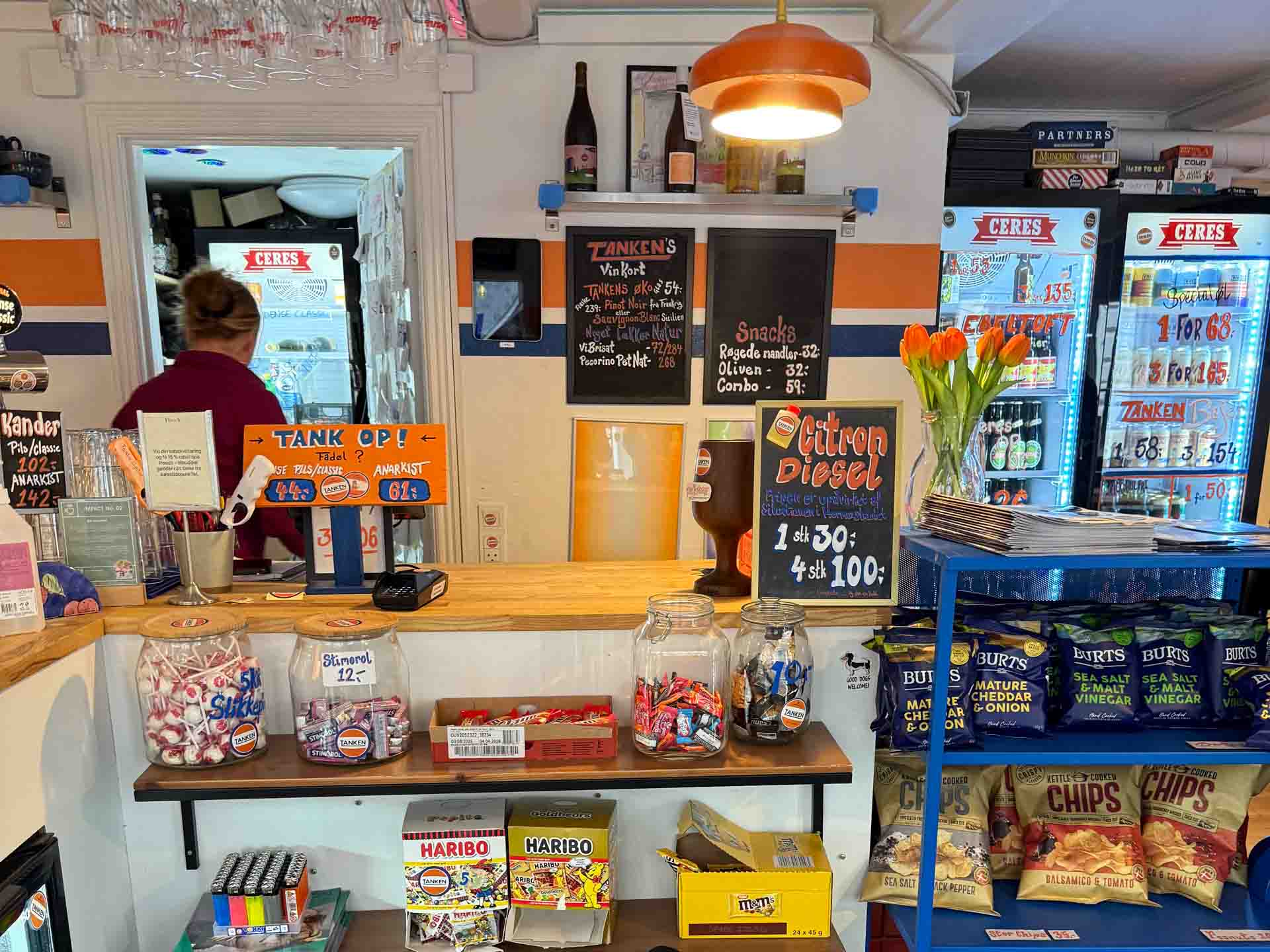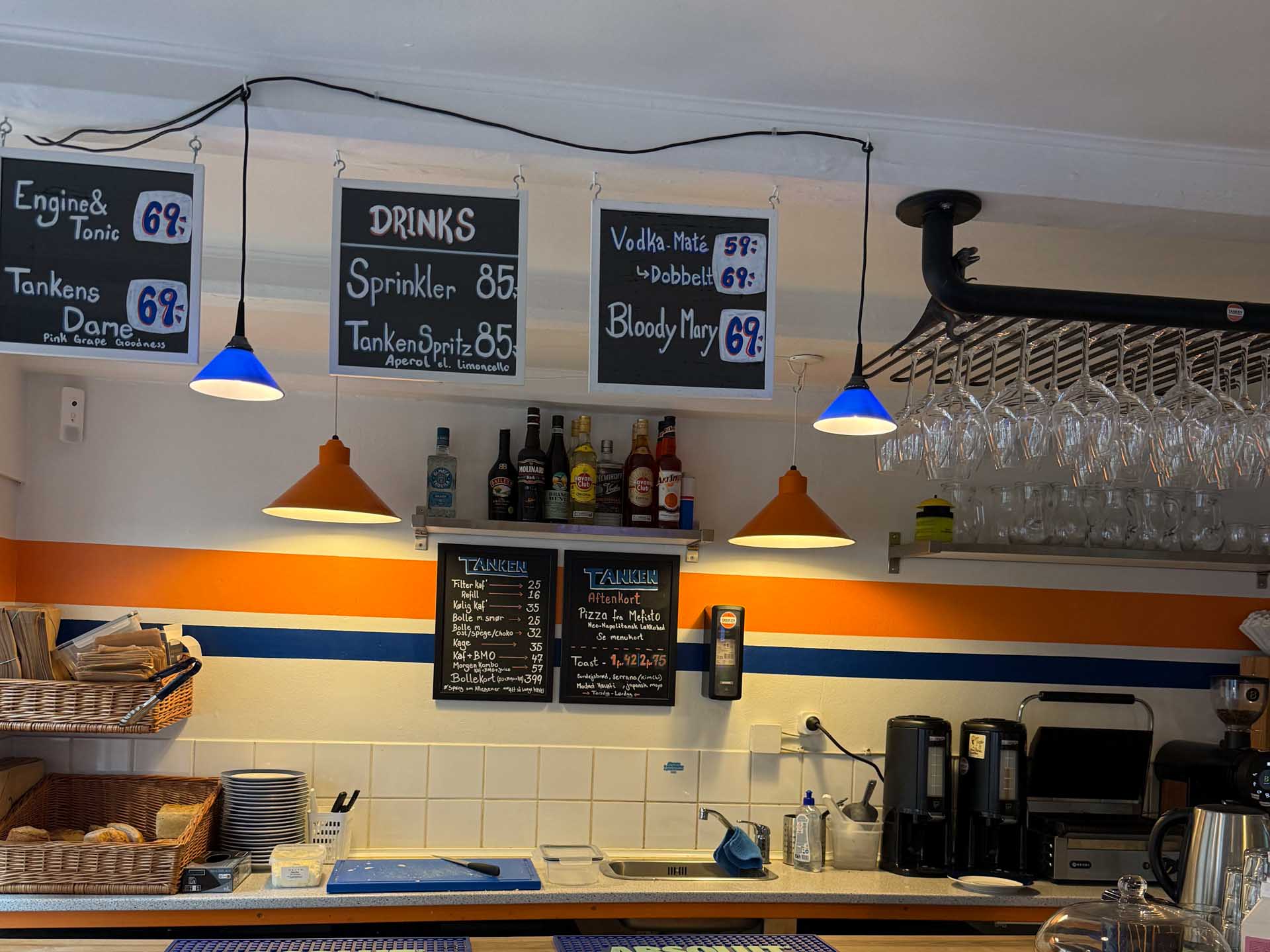 Her hos Tanken i det aarhusianske Latinerkvarter smelter caféhygge og barstemning sammen i en moderne fortolkning af et lokalt samlingspunkt. Baren ligger centralt og fungerer som en social hybrid, der transformerer sig gennem døgnets timer. Navnet er i øvrigt godt fundet på.