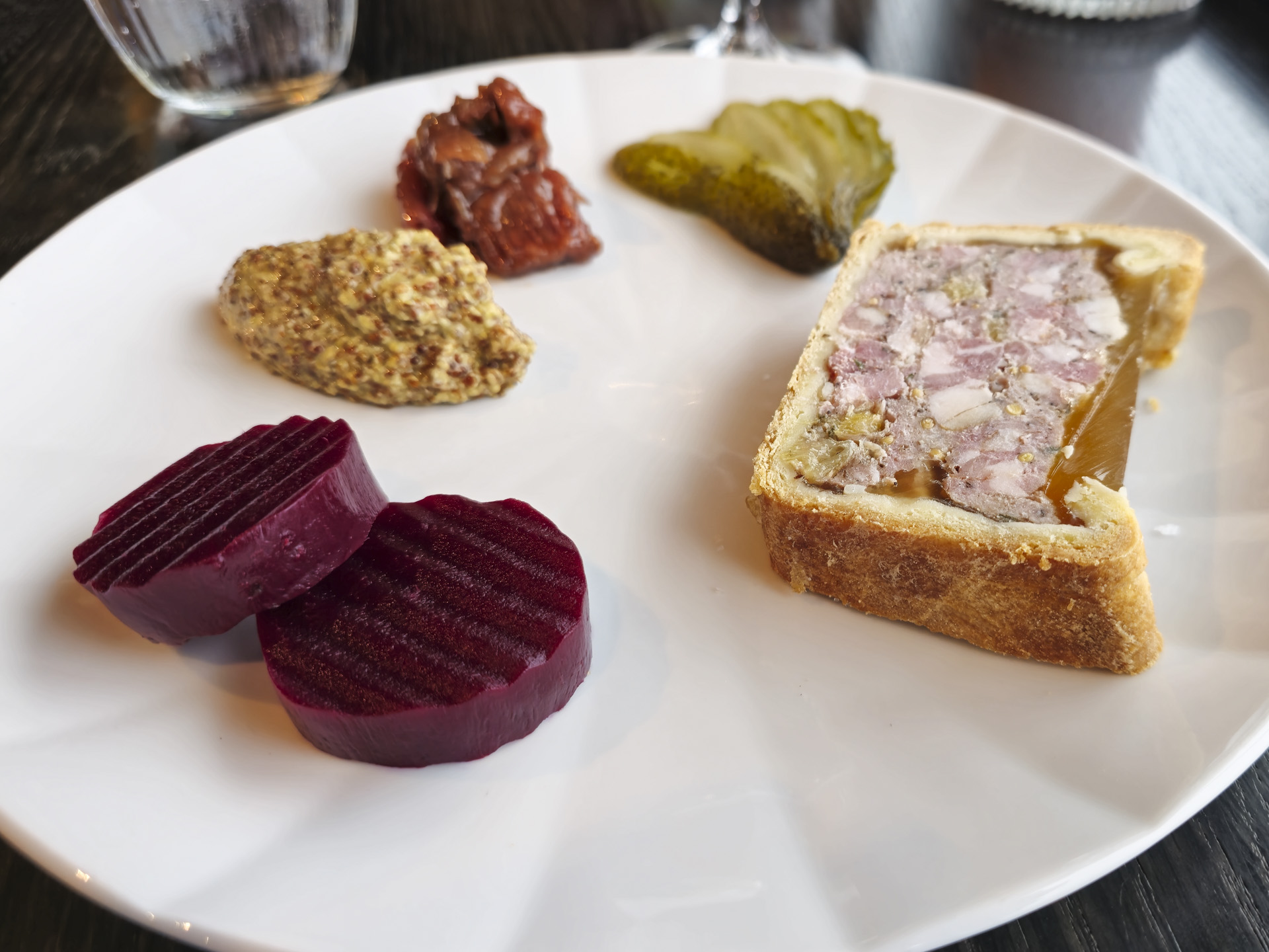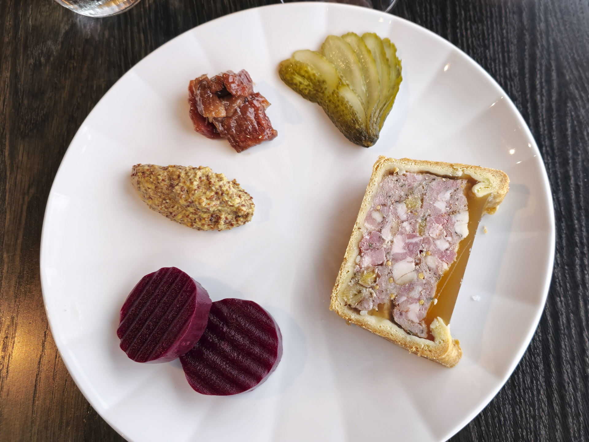 Frokostmenukortet var skarpt, og der var ikke alt for mange valgmuligheder. Til frokost var der bl.a. østers, caviar, paté en croute, cæsarsalat i en nyskabende version af den klassiske ret.