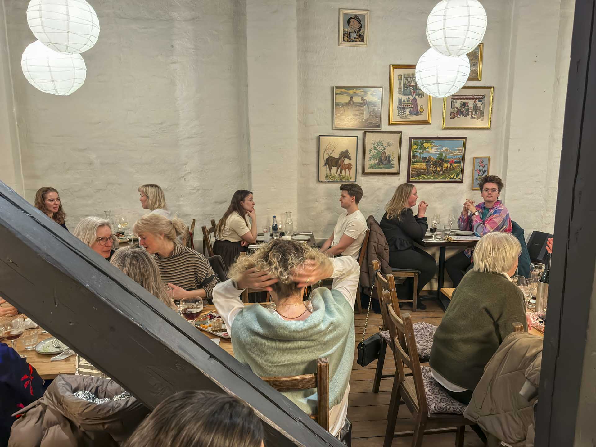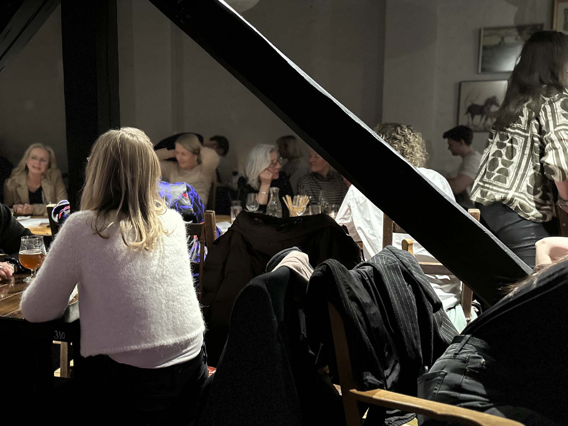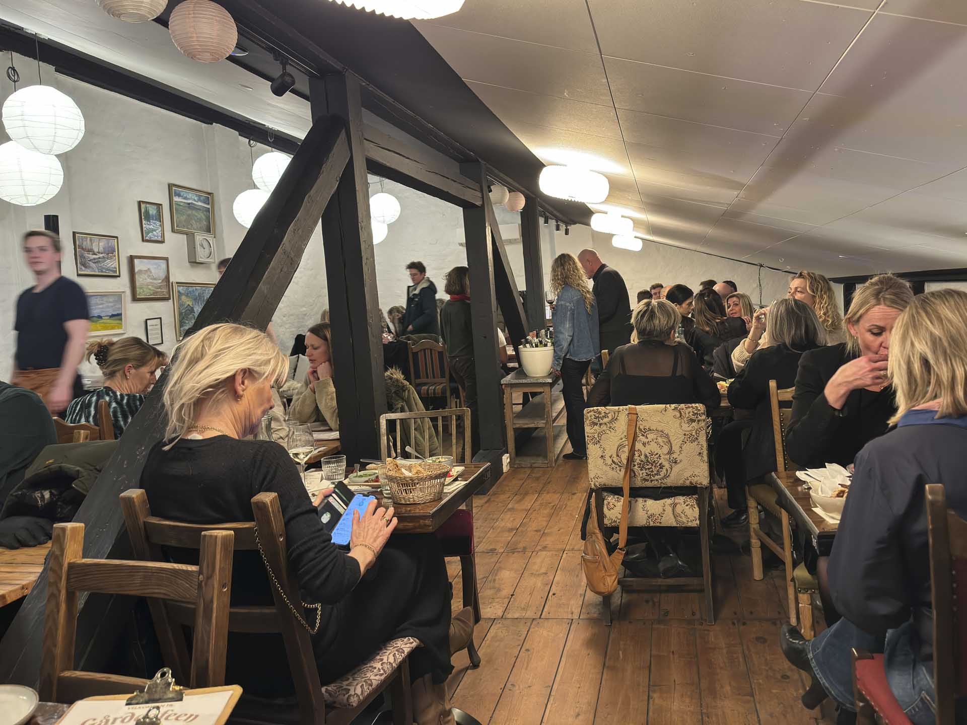 På bordene stod reservationsskilte med navne som Jannie, Lotte, Mette, Dorthe, Pernille, Louise, Trine og Jette. Der var tydeligt kvindeflertal i alderen 30 til 65 år. Venindeaftener kunne ses tydeligt, blandet med par og større grupper. Kære mænd, notér jer lige det.