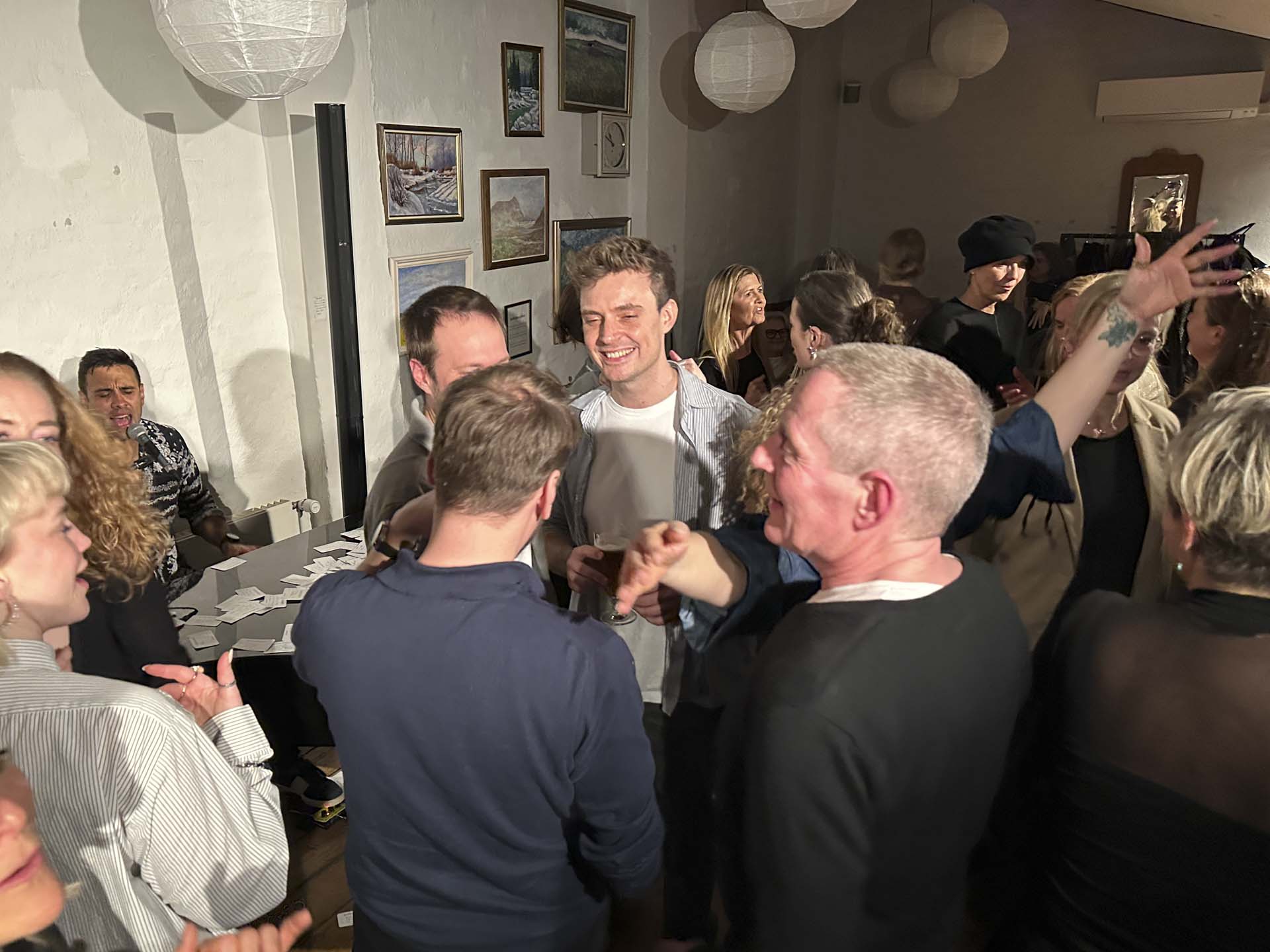 Stemningen var høj fra første tone. Fællessangen kom hurtigt, og den blev ved med at vokse. Først ved enkelte borde, og så som et rum, der fandt samme puls. Der gik ikke længe, før de første var på dansegulvet.