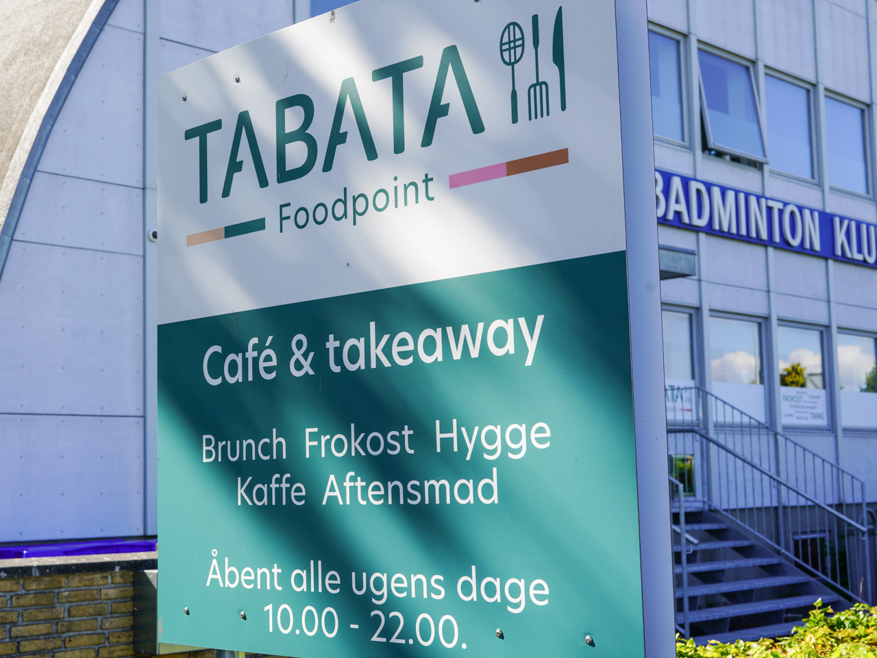 Tabata Foodpoint i Højbjerg var både café og takeaway og lå lidt gemt i den ene ende af Højbjerg Badmintonklubs utraditionelle bygning, et stenkast fra Lysengs store idrætsanlæg. Den var ikke nødvendigvis let at få øje på ved første besøg, men fandt man frem, ventede der et hyggeligt og velfungerende spisested midt i et aktivt sportsmiljø.