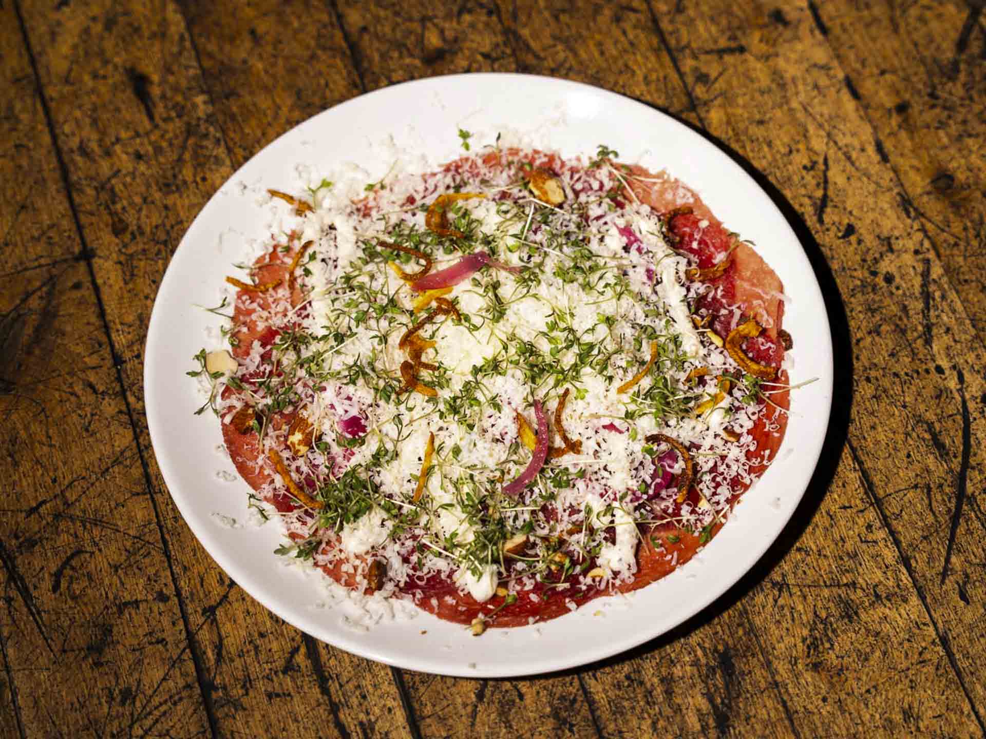 Menuen: Marineret okseinderlår med trøffelmayo og 200 g oksecuvette med fritter og bearnaise.