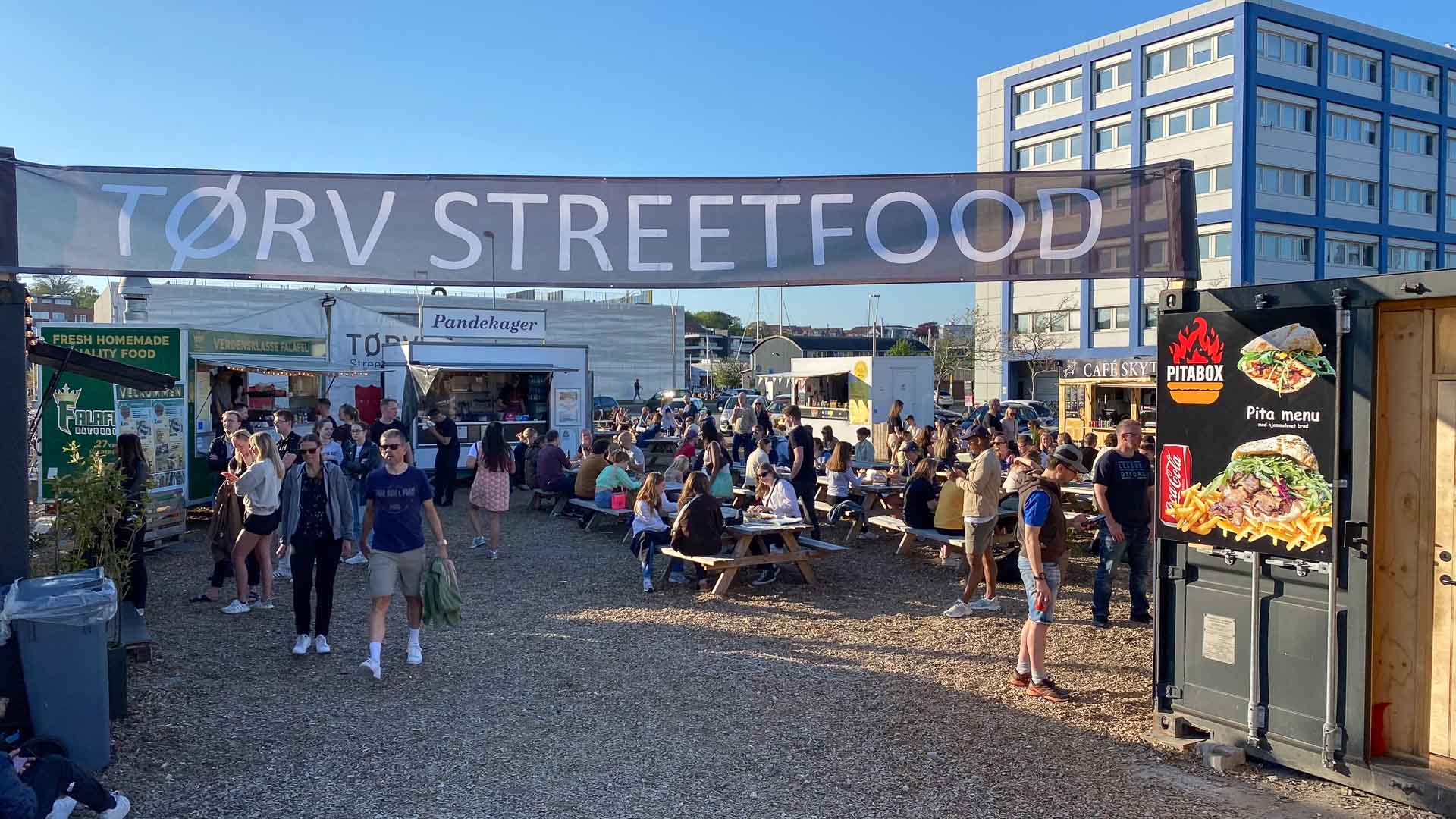 Da der ikke var mulighed for at sidde indendørs ved de enkelte boder, foregik al spisning på det fælles udendørs område. Gæsterne kunne sidde ved borde og bænke, som var placeret under åben himmel og til tider en frisk vind.